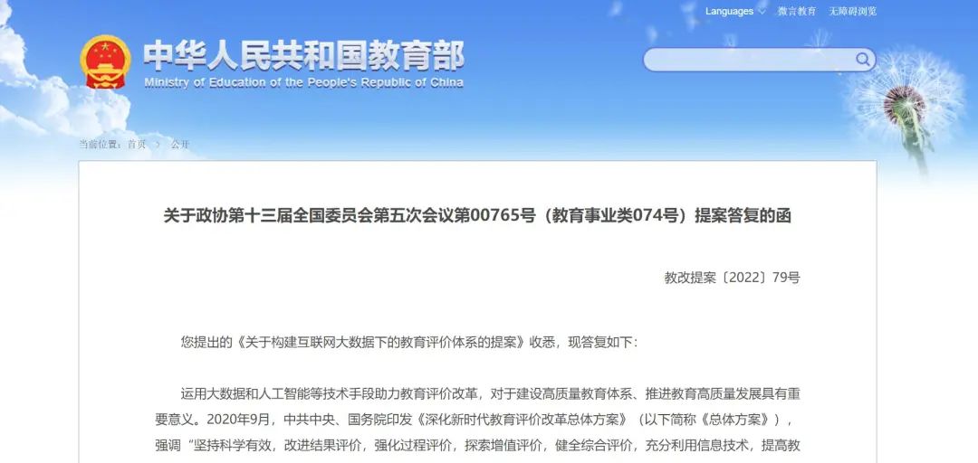 教育部答復政協(xié)提案:構(gòu)建互聯(lián)網(wǎng)大數(shù)據(jù)下的教育評價體系