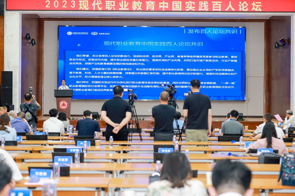 論壇還發(fā)布了《現(xiàn)代職業(yè)教育中國(guó)實(shí)踐百人論壇共識(shí)》。《共識(shí)》指出,高質(zhì)量職業(yè)教育作為高質(zhì)量教育的重要組成部分,不僅是服務(wù)國(guó)家戰(zhàn)略、區(qū)域經(jīng)濟(jì)社會(huì)發(fā)展以及人的全面發(fā)展的教育,也是培養(yǎng)拔尖創(chuàng)新人才、工程技術(shù)人才、技術(shù)技能人才、數(shù)字工匠人才等現(xiàn)代化建設(shè)人才的教育,還是國(guó)家需要、社會(huì)認(rèn)可、家長(zhǎng)期盼、學(xué)生選擇的教育?!豆沧R(shí)》還指出,要補(bǔ)齊知識(shí)化短板,提高職業(yè)教育質(zhì)量、改善職業(yè)教育形象;要充分發(fā)揮百人論壇的影響力,吸納科技界、經(jīng)濟(jì)界、產(chǎn)業(yè)界、教育界等各界精英深度參與職業(yè)教育;職業(yè)院校要承擔(dān)科技成果轉(zhuǎn)化職責(zé),探索建立科教融匯新機(jī)制;要深化國(guó)際交流合作,將中國(guó)職業(yè)教育打造成世界教育中的亮麗風(fēng)景。
