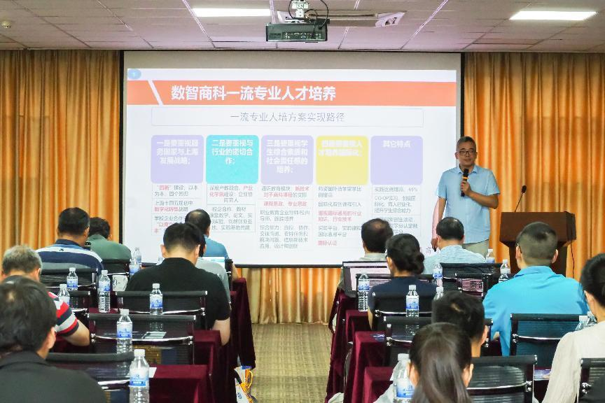 上海商學院商務(wù)信息學院院長蔣傳進以《數(shù)字商業(yè)環(huán)境下,應(yīng)用復(fù)合型人才的培養(yǎng)》為中心,介紹了上海商學院商務(wù)信息學院特色專業(yè)的建設(shè)情況以及人才培養(yǎng)方案。