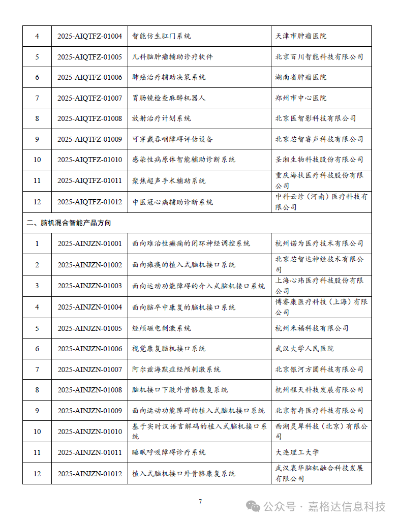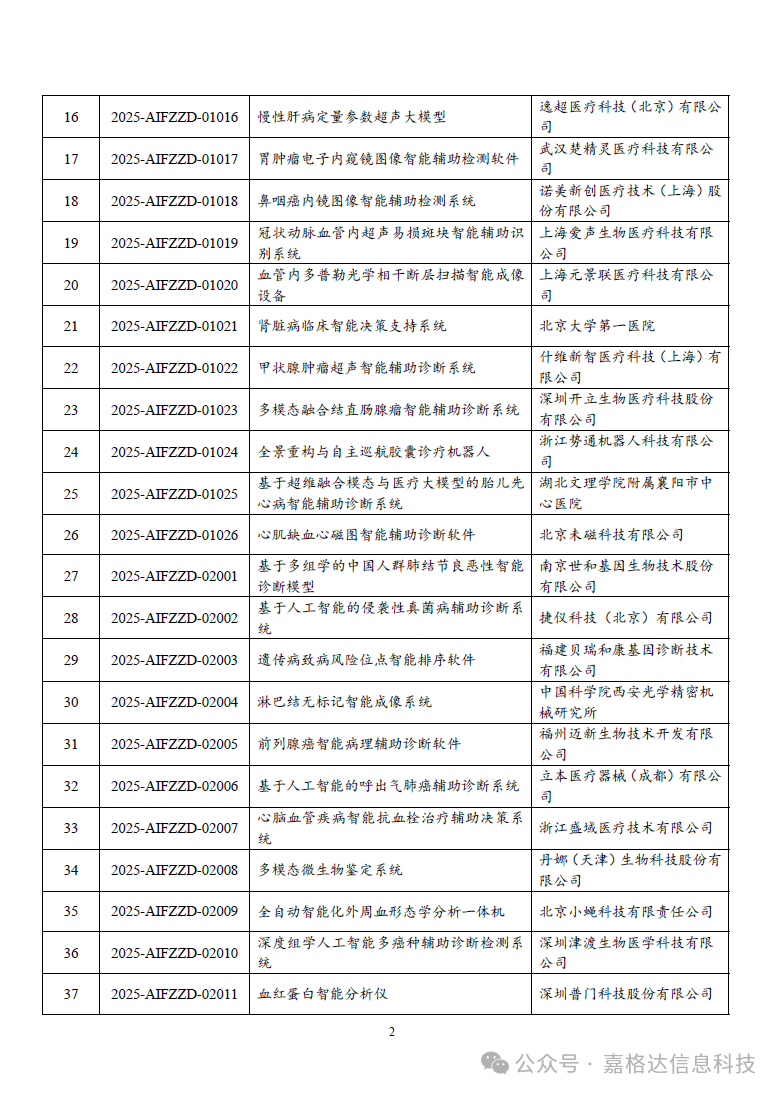 附件:2025年人工智能醫(yī)療器械創(chuàng)新任務(wù)揭榜掛帥入圍單位名單