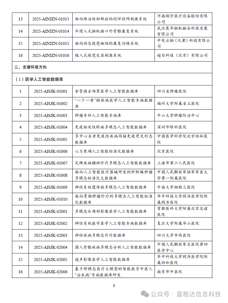 兩部門關(guān)于公布2025年人工智能醫(yī)療器械創(chuàng)新任務(wù)揭榜掛帥入圍單位的通知